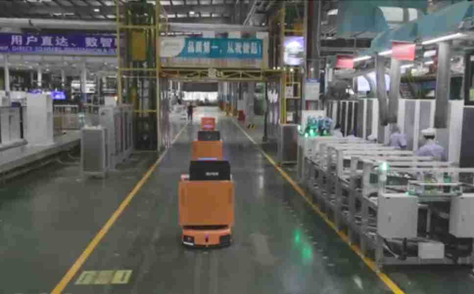 为车载冰箱物流配送打造的智能解决方案,,,包含产中物流通过潜伏举升AMR搬运至线边,,,,产后成品物流智能仓储,,,,流程包含产中物流智能齐套入库,,,线边安灯叫料AMR智能配送至线边,,,,成品入库、、出库,,,,通过无人堆高车机器人,,智能仓储管理替代人工作业管理,,,实现更高存储、、、、更高效率、、更具柔性化的解决方案。。。